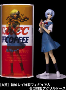 【A賞】綾波レイ特製フィギュア 1,000名様 摩砂雪氏の書き下ろし原画を忠実に再現した特製フィギュア。缶型特製アクリルケース入り。