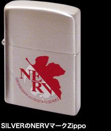 ◆SILVERのNERVマークZippo 銀サテンミラーのボディにエッチングで鮮やかな赤いロゴを鮮明に再現