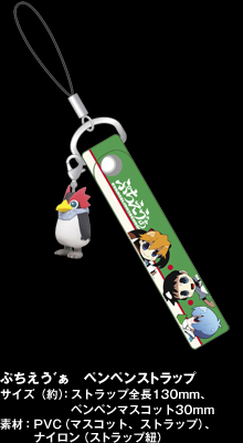 ・ぷちえう゛ぁ ペンペンストラップ 仕様 サイズ(約):ストラップ全長130mm、ペンペンマスコット30mm 素材:PVC(マスコット、ストラップ)、ナイロン(ストラップ紐)